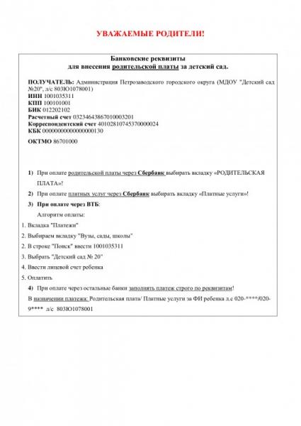 Информация по новым реквизитам для оплаты за детский сад и предоставляемые платные услуги: НОВЫЕ РЕКВИЗИТЫ